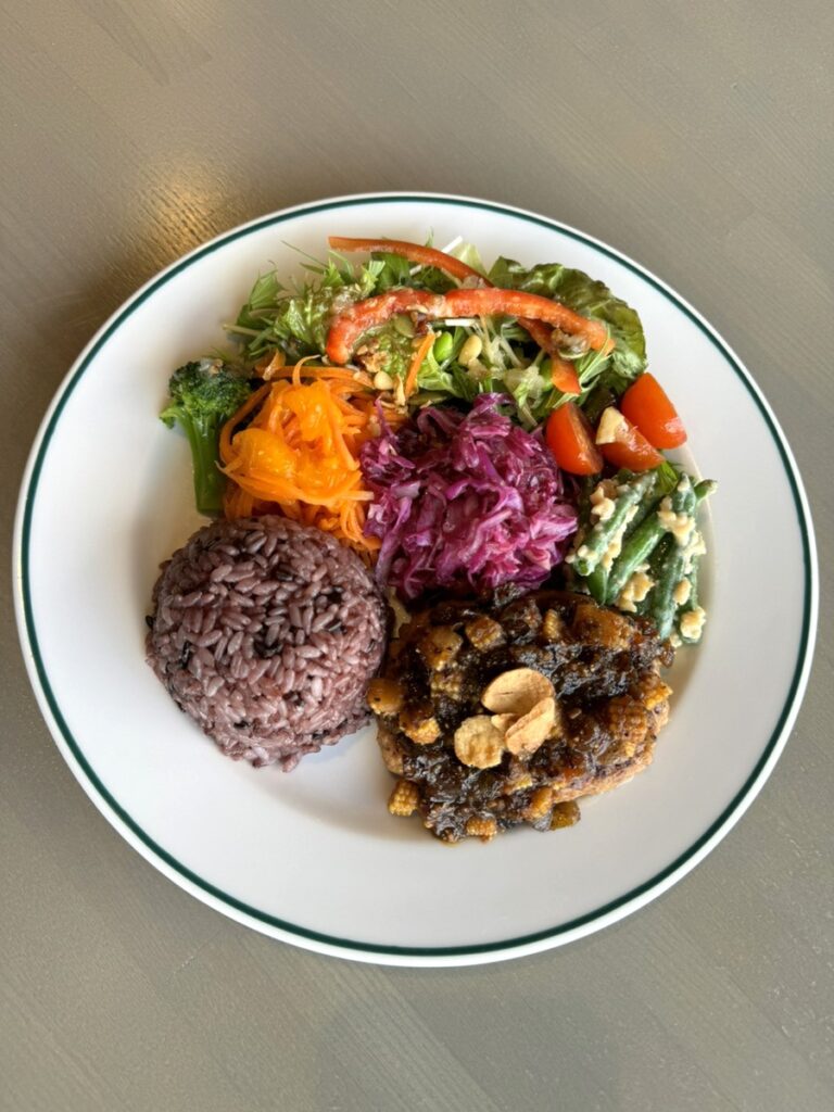 ガーリックオニオンハンバーグ 今週の期間限定メニューは“ガーリックオニオンハンバーグ”になります。 食欲をそそるガーリックの香りにヤングコーンのシャキッとした食感をお楽しみいただけるプレートです! 他のプレートと同じく、ランチセットでのご注文やテイクアウトも可能です。 ぜひこの機会に召し上がりください。